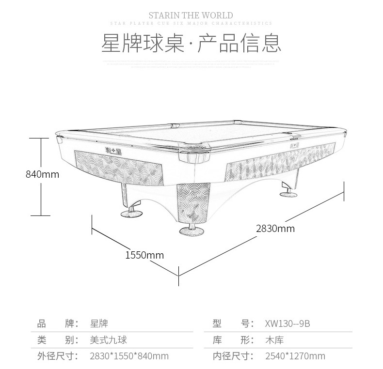 星牌 XW107-10S 小型英式斯诺克台球桌