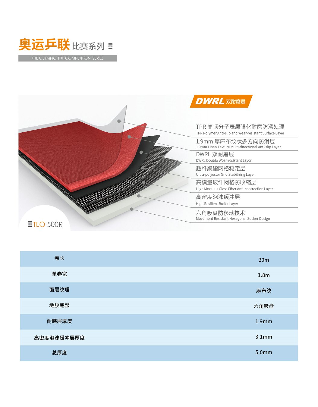 健身器材 > 健身器材大全 > 运动场馆地胶 > 乒乓球地胶 > 天速乒乓球地胶TLO 500R宝石红