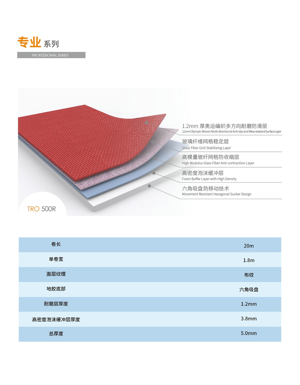 健身器材 > 健身器材大全 > 运动场馆地胶 > 乒乓球地胶 > 天速乒乓球地胶专业系列TRO 500R珊瑚红