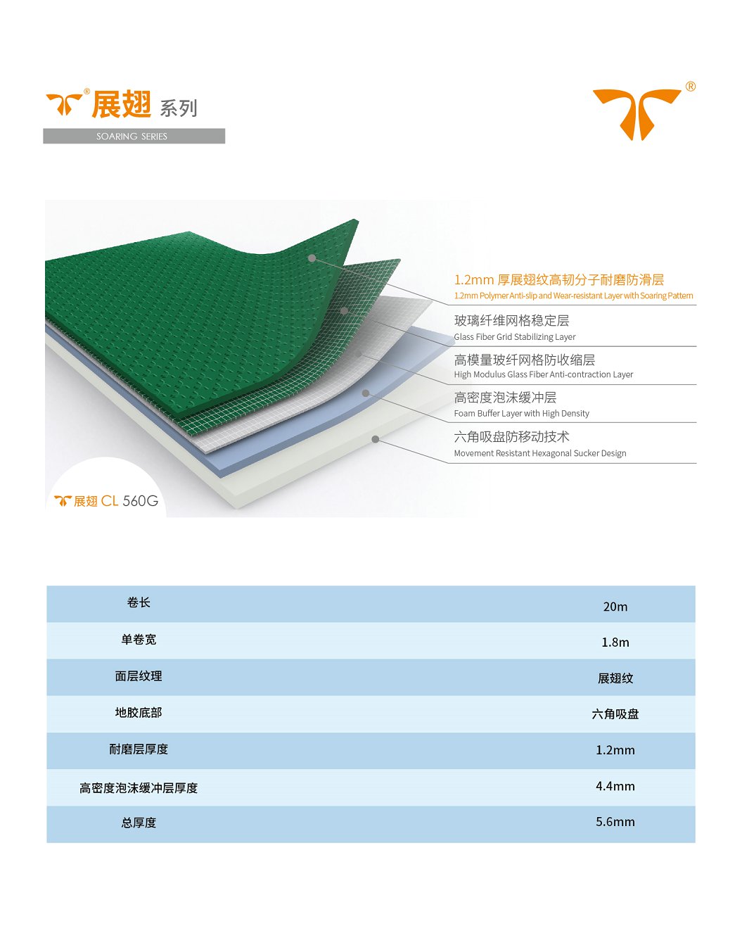 健身器材 > 健身器材大全 > 运动场馆地胶 > 羽毛球地胶 > 天速羽毛球地胶展翅系列CL 560G原野绿