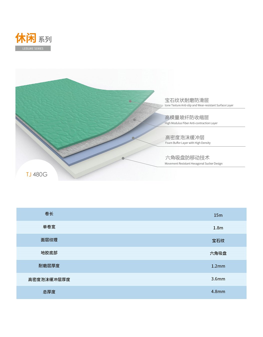 健身器材 > 健身器材大全 > 运动场馆地胶 > 羽毛球地胶 > 天速羽毛球地胶休闲系列TJ 480G绿色
