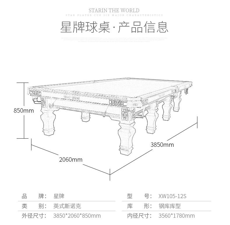 星牌 XW107-10S 小型英式斯诺克台球桌